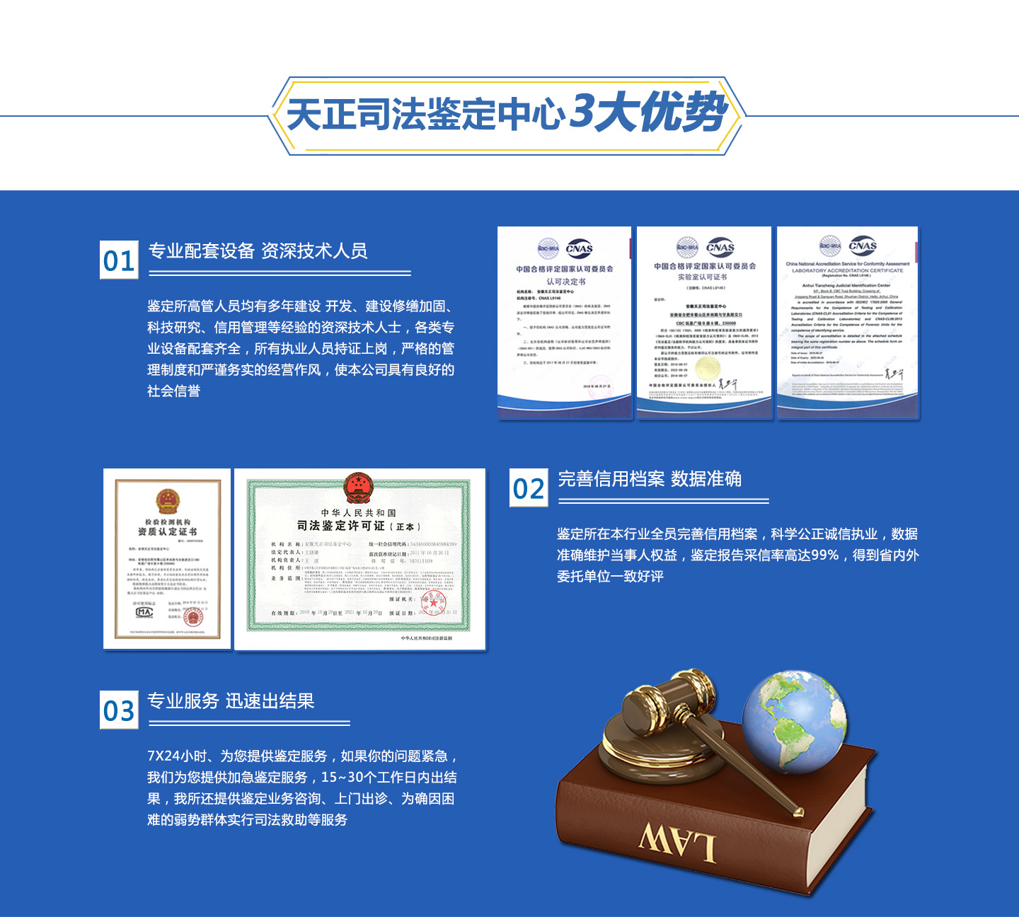 安徽天正司法鑒定中心于2011年10月20日,經(jīng)安徽省司法廳批準成立;是一所集法醫(yī)類鑒定、痕跡鑒定、文書鑒定、聲像鑒定、微量物證鑒定于一體的綜合類的司法鑒定機構(gòu)。 我中心位于合肥市蜀山區(qū)井崗路與甘泉路交口CBC拓基拓基廣場B座5樓、6樓,職場面積近2000平方米,配備技術(shù)人才,建有鑒定實驗室及儀器設(shè)備。截止目前,我中心有司法鑒定人53名,具有中級以上技術(shù)職稱的36名;并建有安徽天正司法鑒定中心實驗科研中心、法醫(yī)毒物實驗室、法醫(yī)物證實驗室、電子數(shù)據(jù)實驗室、法醫(yī)病理實驗室、微量物證實驗室、文檢實驗室等,同時與各大高校建立校企合作關(guān)系,提供實習(xí)實訓(xùn)平臺。